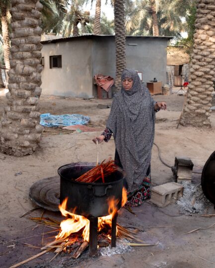 Palm fibers dyed over an open fire using synthetic dye crystals, Al Julayjilah palm farm, Al-Ahsa. Photo: Latifa AlBokhari