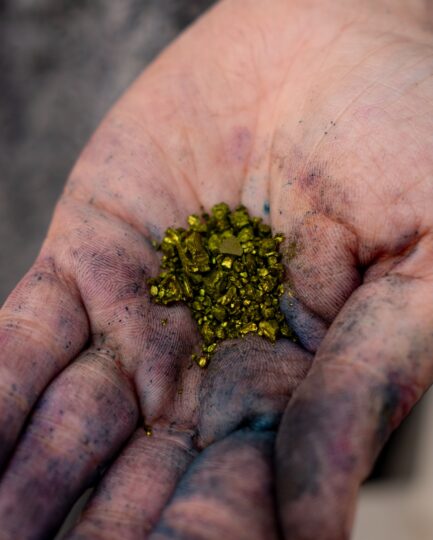 Ma’souma opens her palm. The skin stained blue and purple from dyeing. “Take a picture of my hands,” she says. In the center lies a small mound of metallic crystals, green-gold in the sun. She calls them qurmoz, the ancient name for crimson insect dye. Yet here it refers to something else: synthetic crystals purchased from the market, sealed in thin plastic bags.