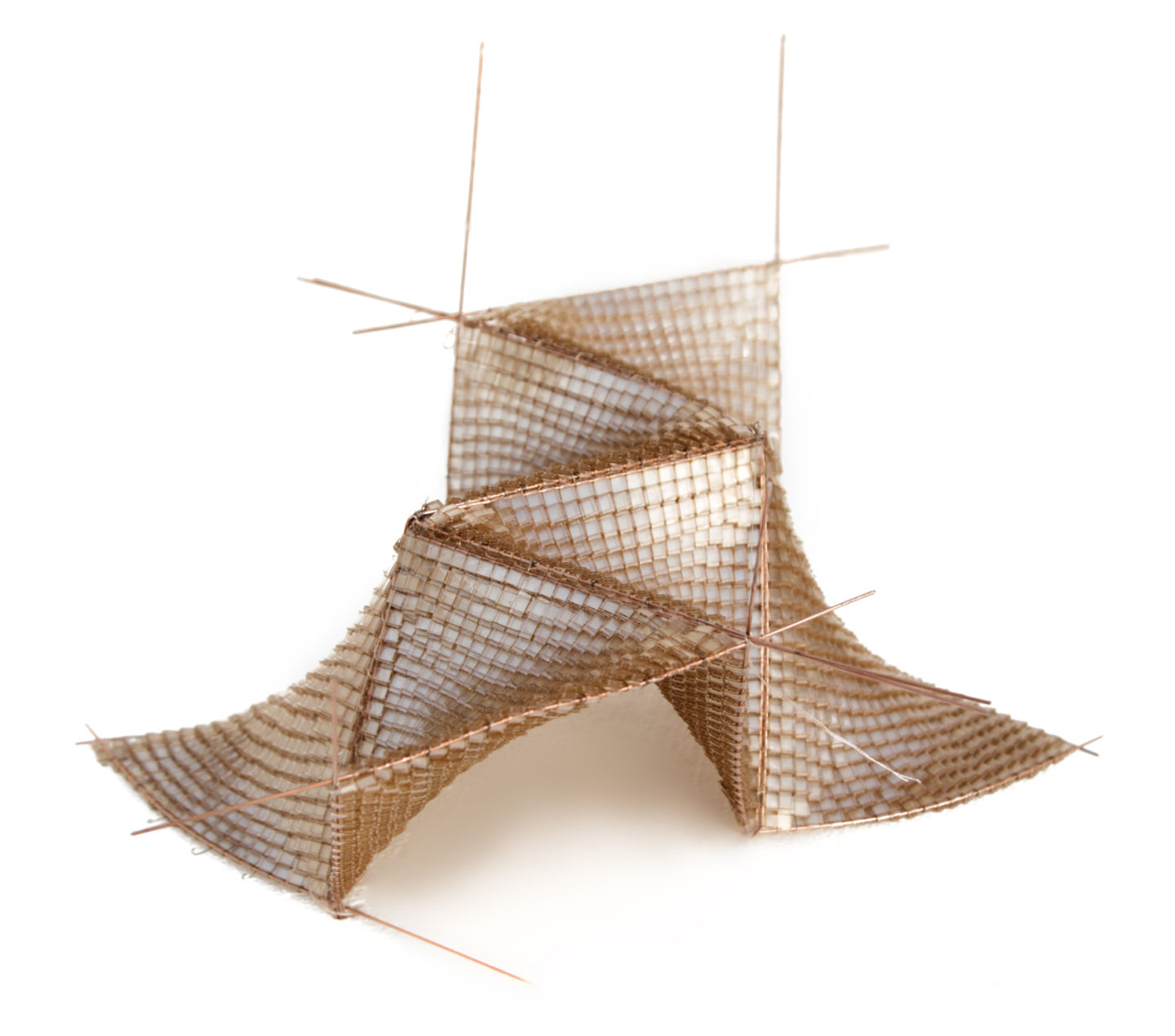 With the constant emergence of new materials and construction techniques, architecture has increasingly become driven by the fabrication process- and not only by questions of space. In what is part of my ongoing exploration of designing through making, I was inspired to investigate the spatial behaviour of forms purported to be only possible through such contemporary fabrication techniques. Starting with systems originally derived from traditional weaving, and gaining more complexity by adopting geometric folding and cutting principles inspired by the traditional Japanese art of Origami and Kirigami; the modular configuration of the facets evolved to follow the geometry of a hyperbolic paraboloid.
